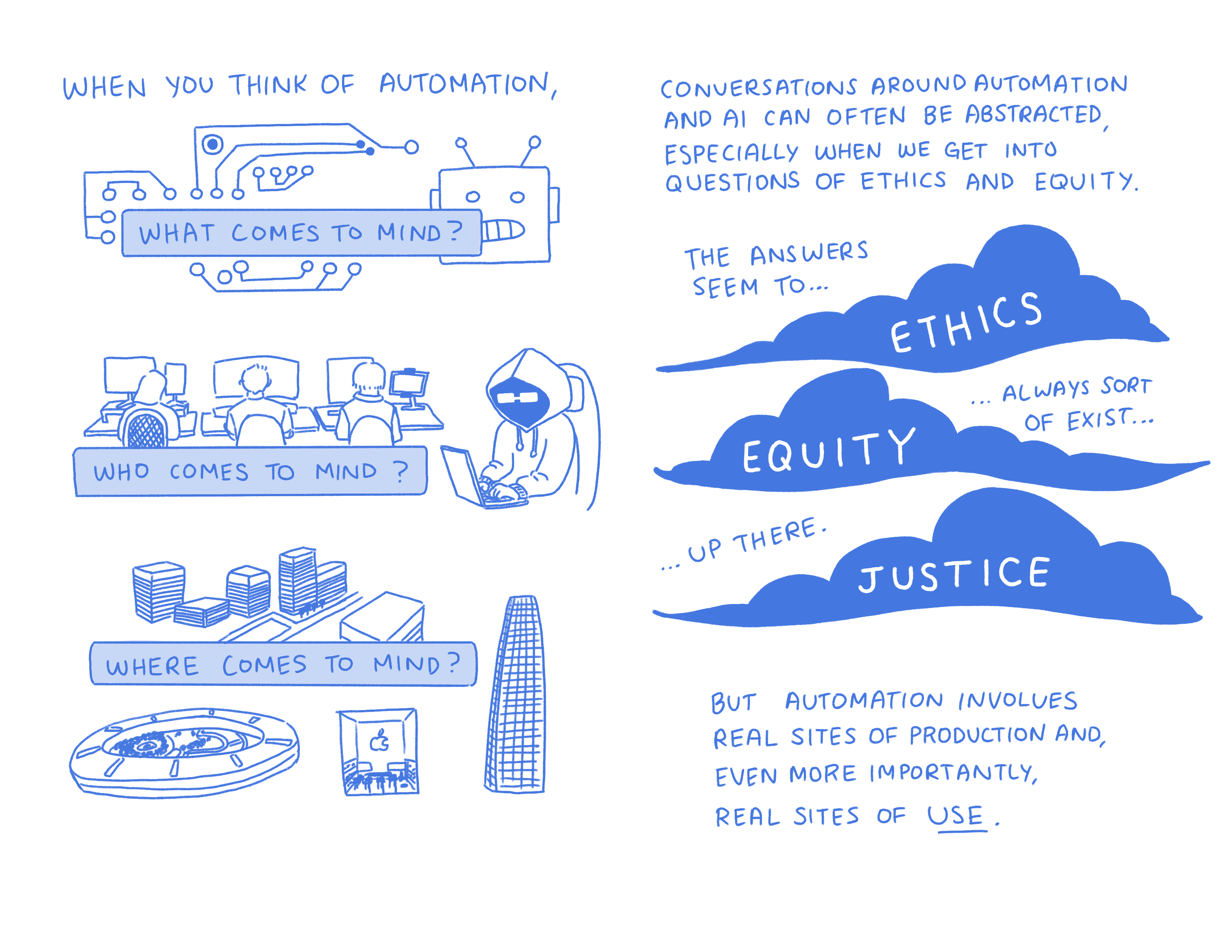 This critical zine examines artificial intelligence (AI) and automation across Greater Los Angeles, drawing on ethnographic fieldwork of public engagement events in the LA Harbor Area and Silicon Beach. It shares the direct words of people impacted by AI systems at the Port of LA through the personal and political lenses of the authors and creators. We share this free community-oriented zine to use the resources and power we have to amplify and support organizing, bring the knowledge generated by the community to a conversation that hasn’t thought to include them, and broaden the audience that knows about the fight. We hope you find it useful in widening consideration of AI and automation to include matters of power, inequality, and social justice.